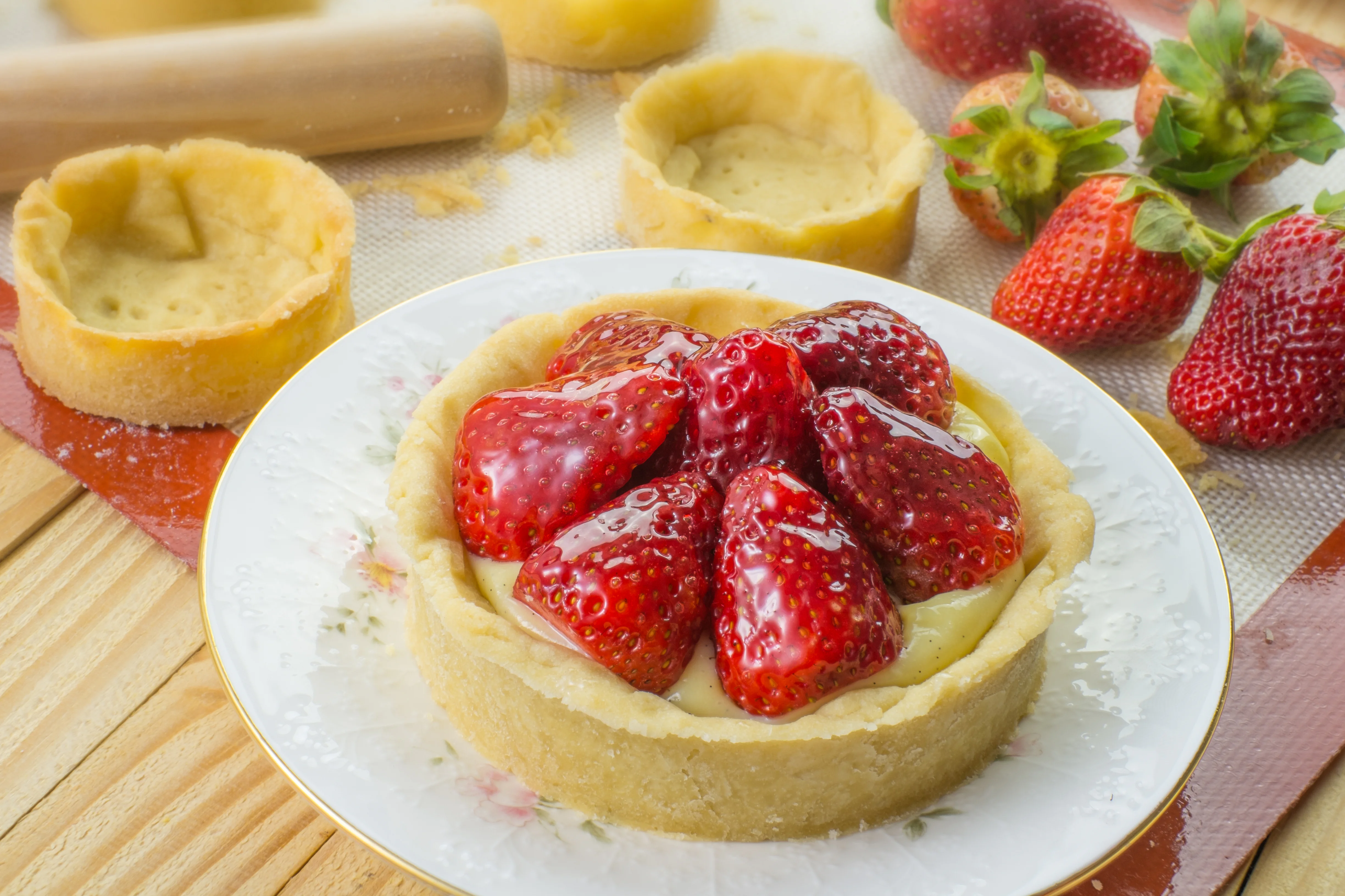 Sur les Galettes, disposez un peu de crème pâtissière puis ajoutez les fraises ou le zeste du citron en fonction de vos goûts. Gardez au frais jusqu’à la dégustation.